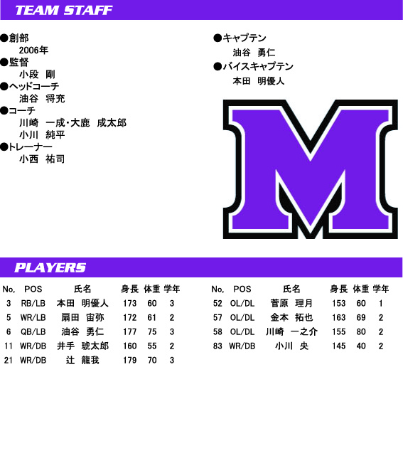 チーム紹介 立命館守山中学 池田ワイルドボアーズ 王子スポーツクラブ 大阪ジュニアベンガル 関西学院中学 京都クラッシュベアーズ 啓明学院中学 千里ファイティングビー 長浜西中学 長浜南中学 高槻中学 南山中学 立命館宇治中学 六甲学院中学 OSAKAマービィーズ 海陽中等教育学校